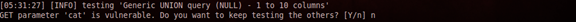 我们发现你的网站存在mysql显错注入,mysql数据库版本是5.0. 我们通过加入参数”-dbs”来尝试采集数据库名.