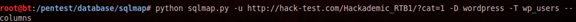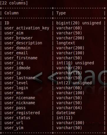 通过参数“-T wp_users –columns ”来查看wp_users表中的字段.