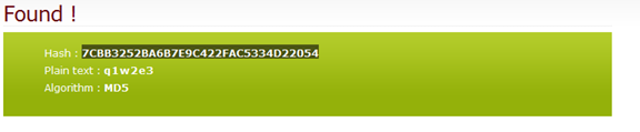 我们会发现用户名和密码hashes值. 我们需要通过以下在线破解网站来破解密码hashes