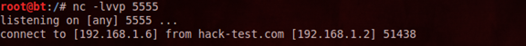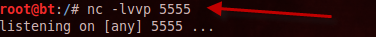 我们用NC来反弹一个shell,首先在我们的电脑上监听5555端口.