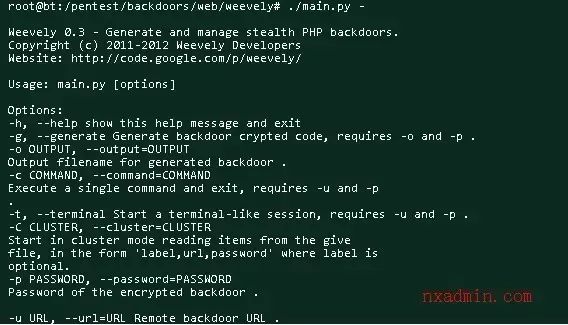 root@bt:/pentest/backdoors/web/weevely#./main.py –
