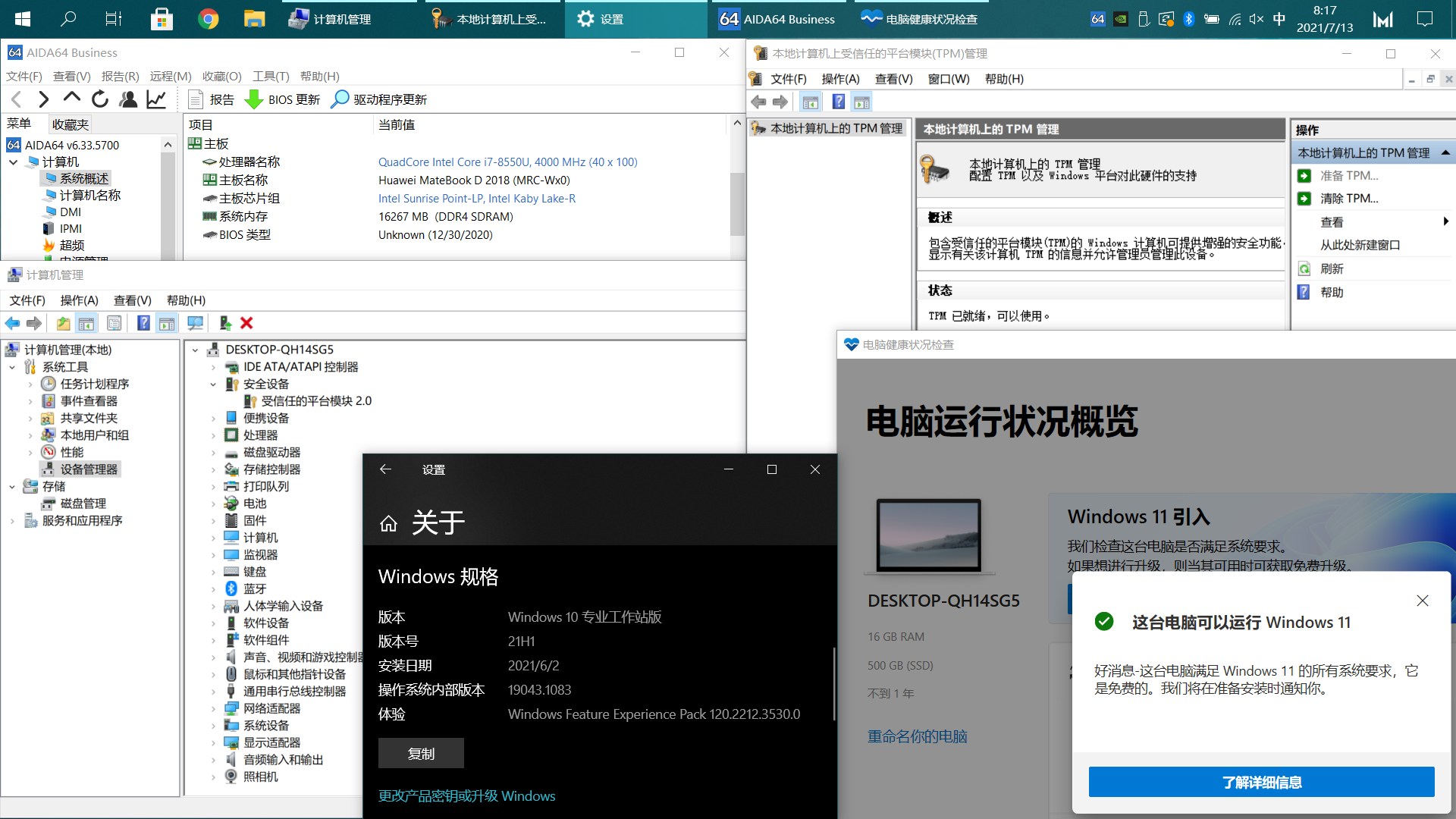 1.仅适用于被软屏蔽但硬件上确定存在TPM的笔记本(目前确定华为MateBook 2018以及2018年出产的荣耀笔记本,前提是硬件满足微软要求)。