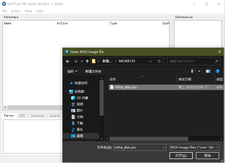 快捷键(Ctrl+O) 使用UEFITool打开BIOS文件