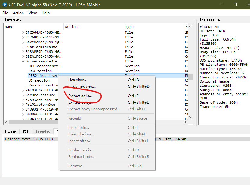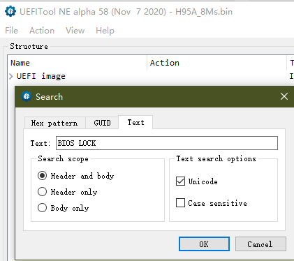 2.UEFITool ————- 查找BIOS中相关变量(字串)导出为二进制文件的工具