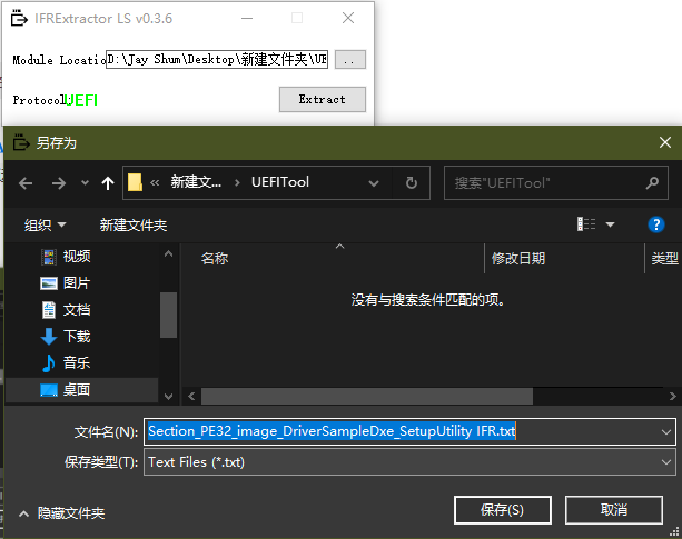 用IRFExtractor打开UEFITool导出的二进制文件,点 Extract 保存为人类语言文本
