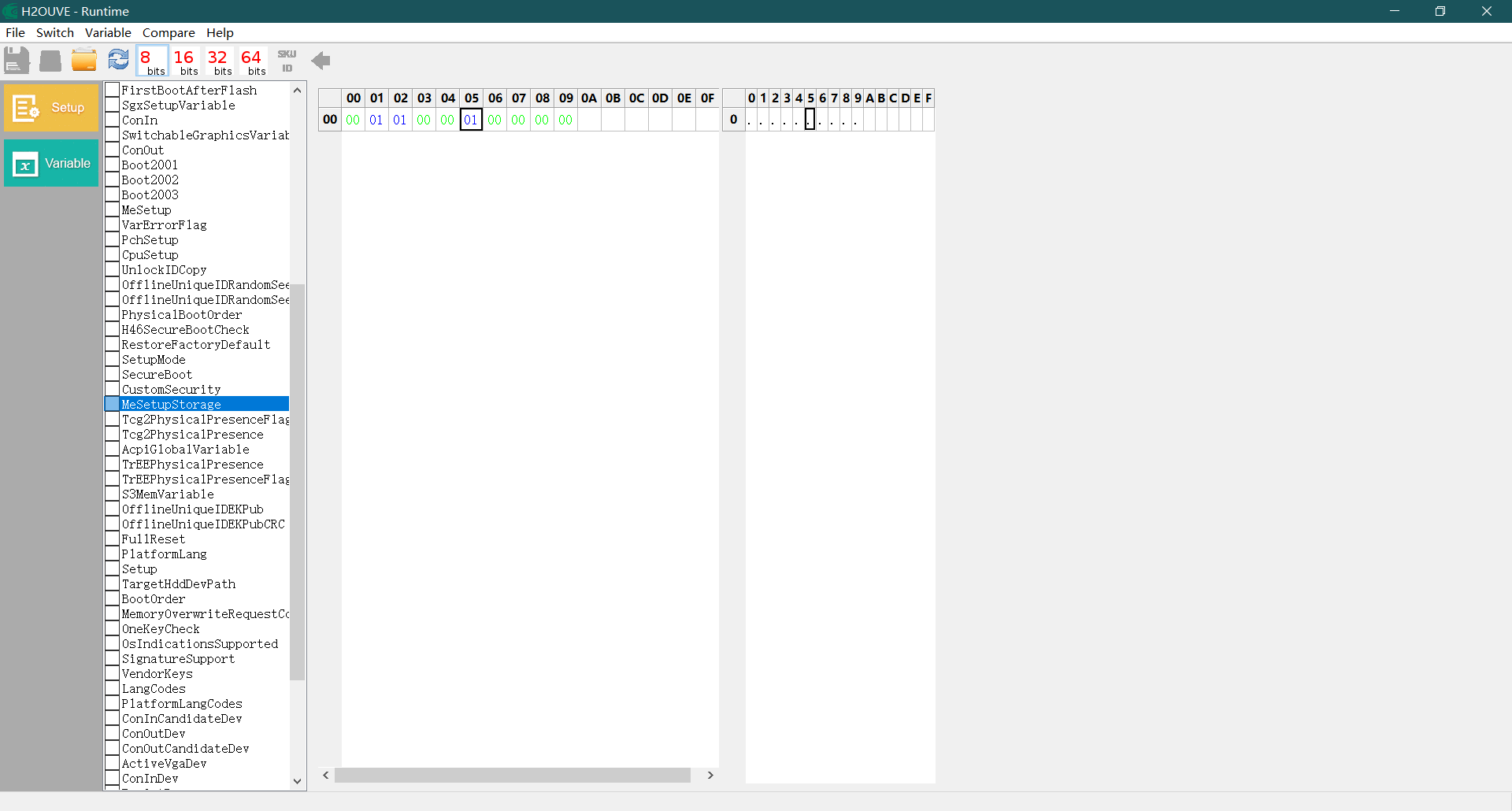 MeSetupStorage 偏移坐标 0x6 数据改为 01